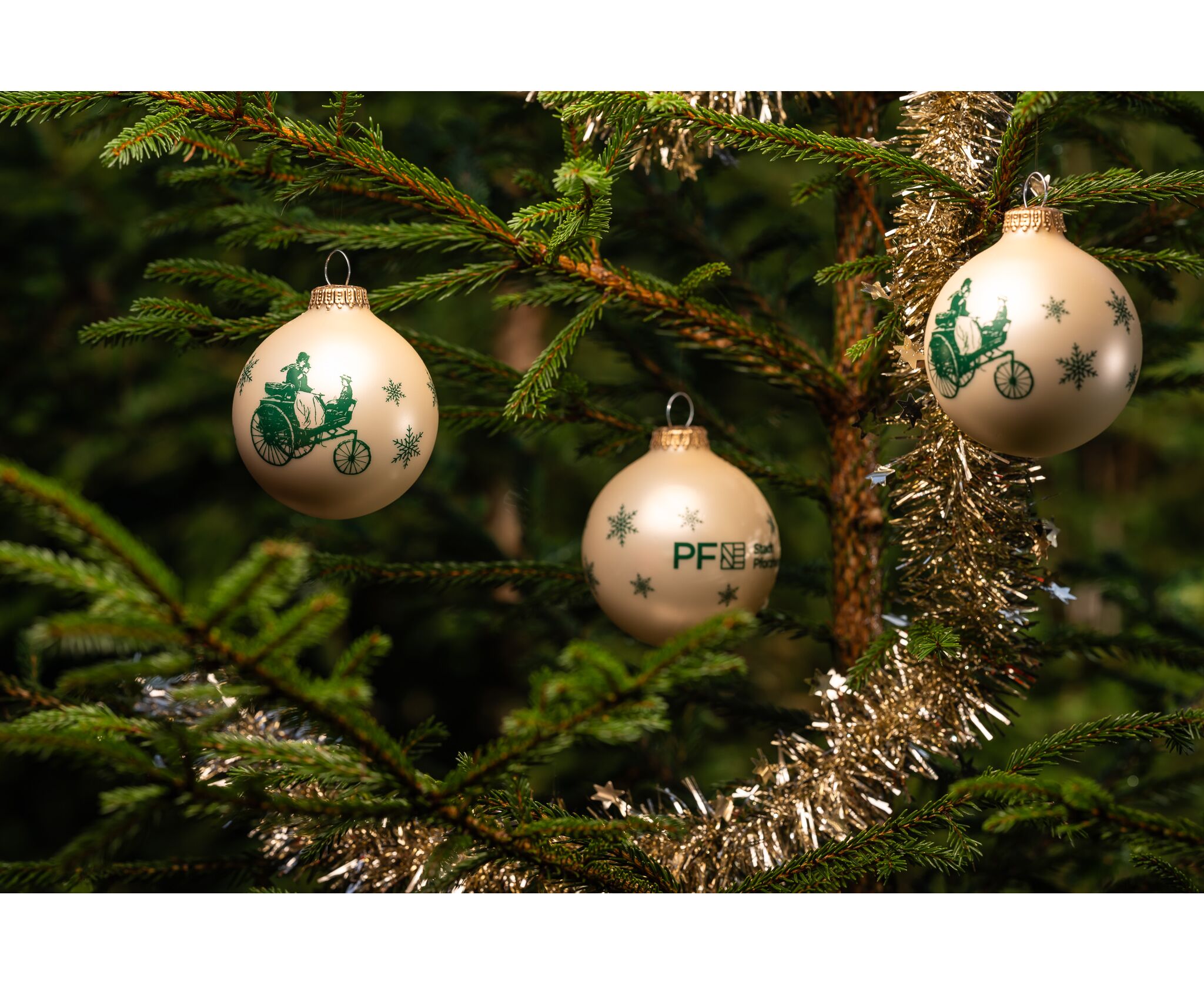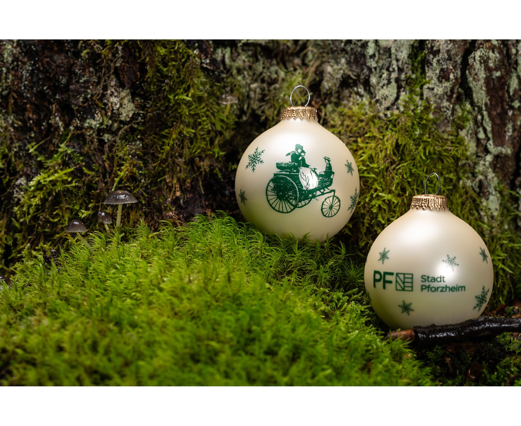 Das bereits vierte Motiv der beliebten Weihnachtskugeln ziert im Jahr 2024 die berühmte Pforzheimer Tochter Bertha Benz anlässlich ihres 175. Geburtstags. Die aufwendig gestaltete Kugel zeigt das Motiv der Autopionierin auf ihrer historischen Fahrt von Mannheim nach Pforzheim im Jahr 1888. Berta Benz, geboren am 3. Mai 1849 in Pforzheim, gilt als erste Person, die eine Fernfahrt mit einem Automobil unternommen hat. Die neue Weihnachtskugel würdigt Berta Benz' Pioniergeist und ihren Beitrag zur Automobilgeschichte. Die exklusive Weihnachtskugel ist ein besonderes Geschenk für alle, die sich für die Geschichte des Automobils und die beeindruckende Persönlichkeit Berta Benz interessieren.