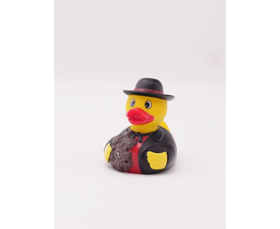 Für alle Großen und Kleinen Schwarzwald-Fans und Sammler gibt es die quietschende Badeente, pardon, den quietschenden Badeerpel Karl Kuckuck. Mit seiner Kuckucksuhr und der klassischen Tracht mit schwarzer Jacke und Hut mit Hutband ist Karl Kuckuck der Schwarzwalderpel schlecht hin in der Badewanne. Karl Kuckuck ist ein praktisches und witziges Schwarzwald-Souvenir, was jedem ein Lächeln ins Gesicht und Schwarzwaldflair in's Badezimmer zaubert. Passend zu Karl gibt es noch Bärbel Bollenhut. Zusammen baden sie durch dick und dünn, 4,99€ (Preis pro Stück)