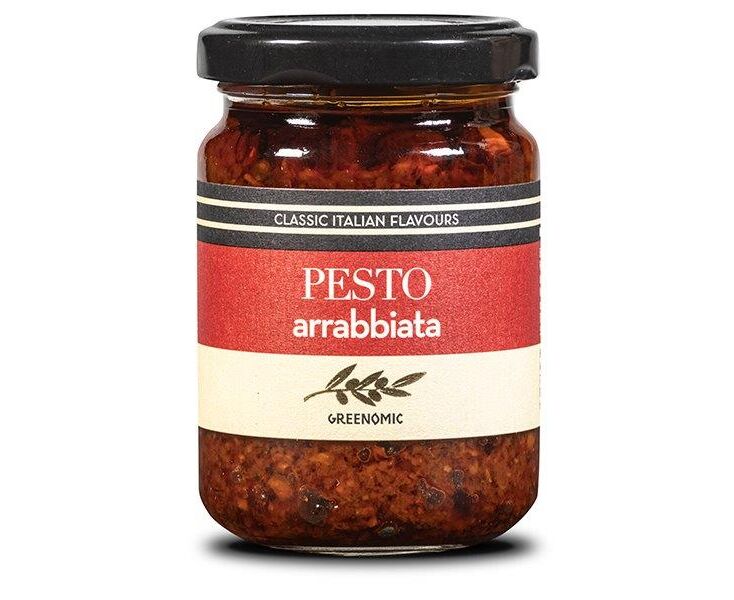 Das Pesto Arrabbiata mit getrockneten Tomaten und Chilis ist eine perfekte Alternative zum klassischen Pesto Rosso. Frisch zubereitet für Greenomic, mit sorgfältig ausgewählten Rohstoffen aus der reichen Natur der Toskana! Ein Echter Klassiker, klassisch im Aussehen, außergewöhnlich im Geschmack. Hergestellt in Italien für Greenomic.